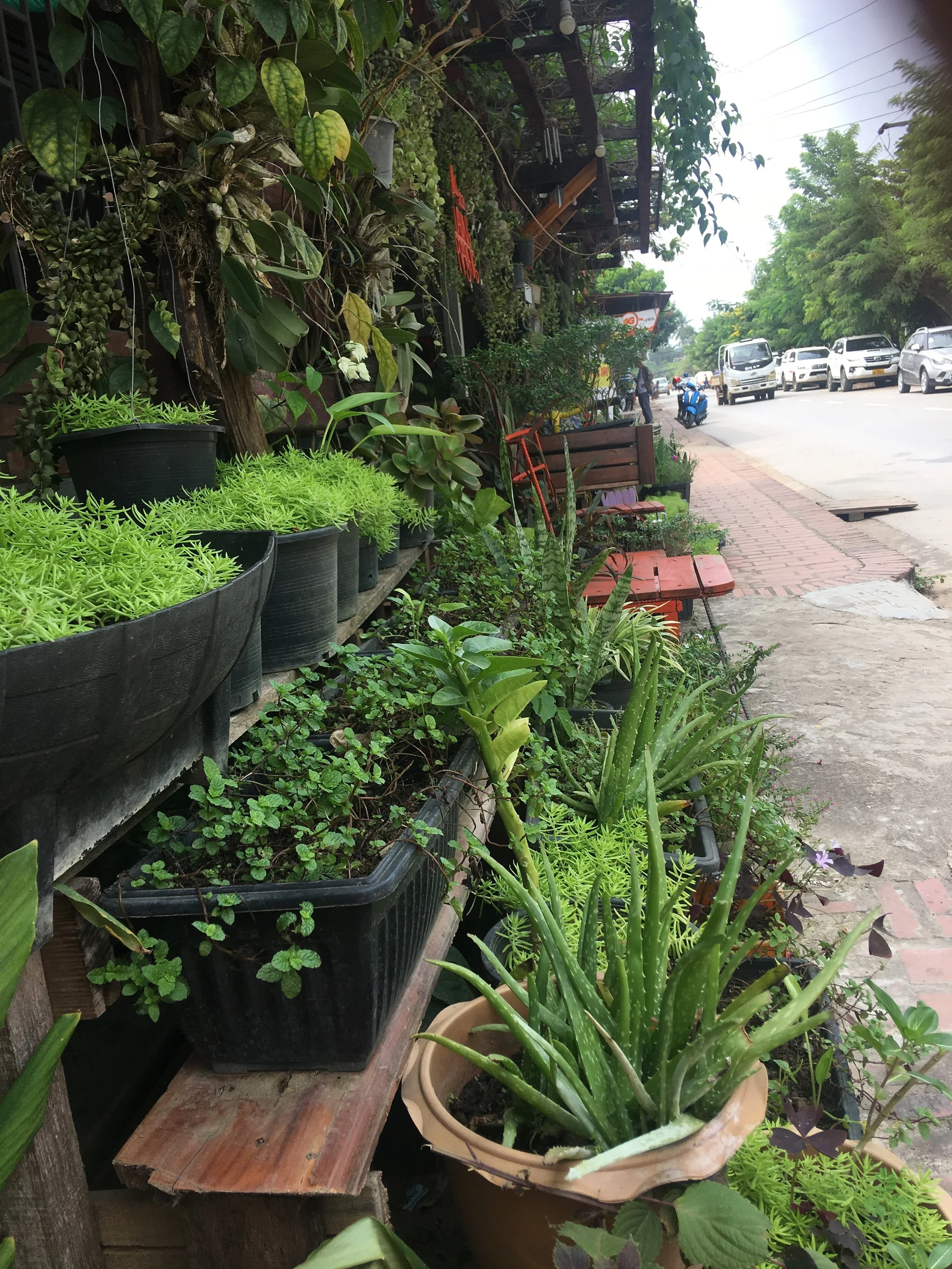 Nothing difinitive has been stated and we fear that no solution is in sight in spite of the huge amount of money that we have deposited in each large town! We thought we were going to collect the car yesterday and took ourselves out of town on the local multi-seated Tuc Tuc taxis. In spite of showing our driver the location on Maps Me, he steadfastly drove off in the opposite direction. He then met a mate on the street who looked at the map and turned him around. We had fun puttering out of town weaving in out of traffic. The Tuc Tuc driver was ushered onto the grand Toyota forecourt by saluting security and the Lao women in charge emerged from the gleaming air-conditioned glass doors to greet us. Landy however was still stuttering back and forth in the workshop and we were sent away again!