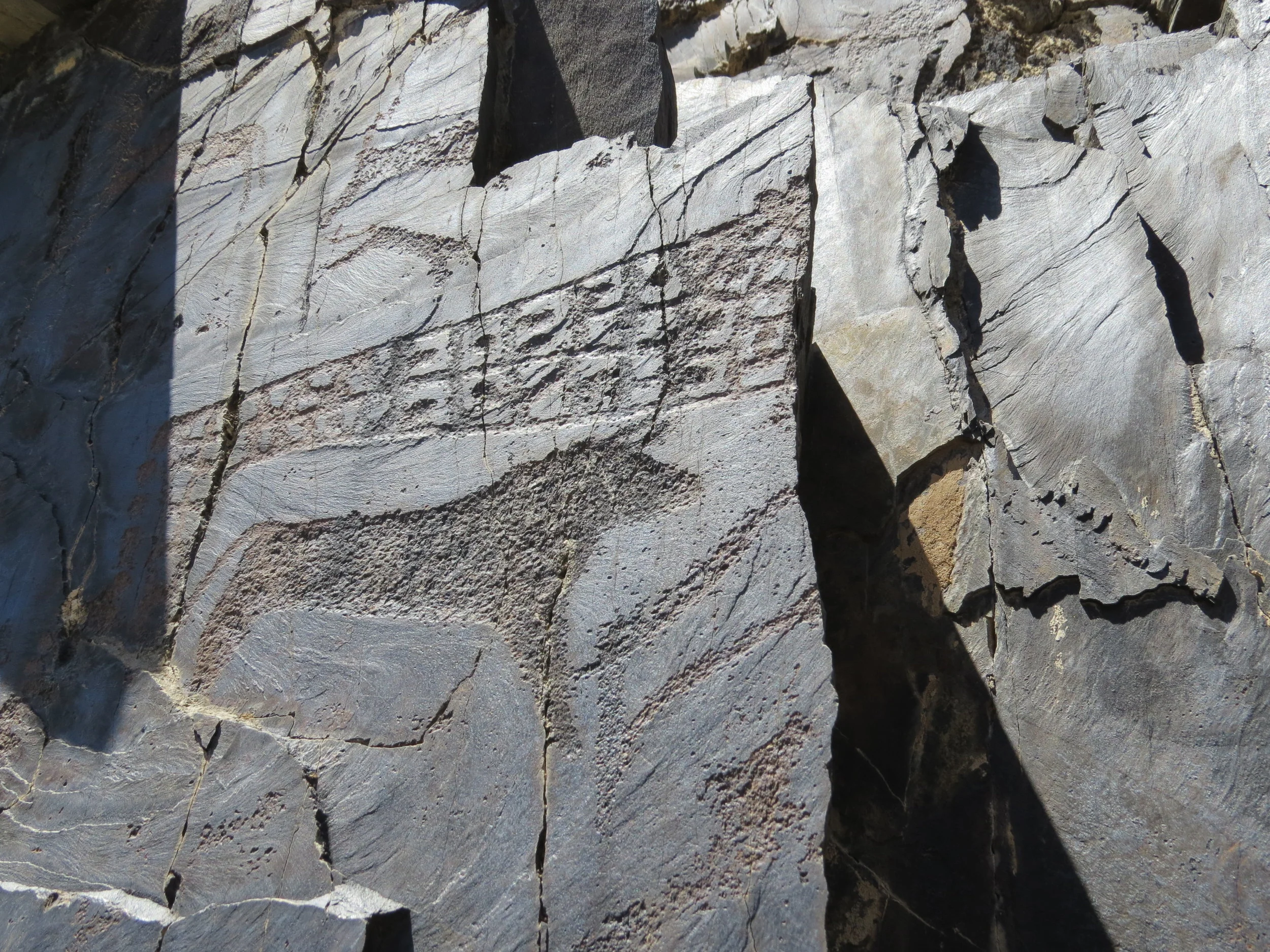 We were then led by foot across a ford and along an unexpected footpath in a fairly small canyon to a narrow track, above which we could see these amazing rock carvings.