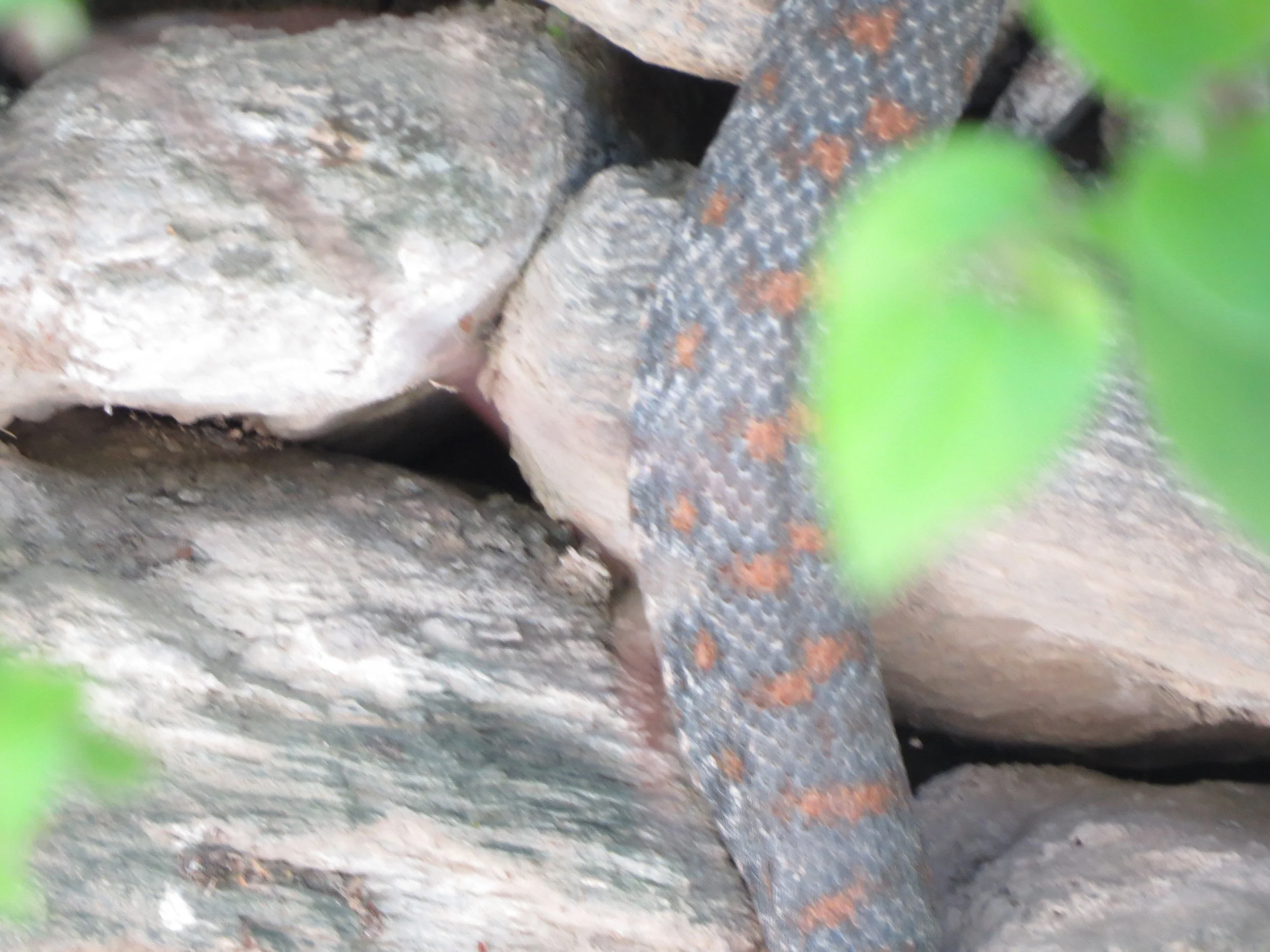 Nothing good happened to the snake as it slithered over a stone wall alongside the path leading back to the village.
