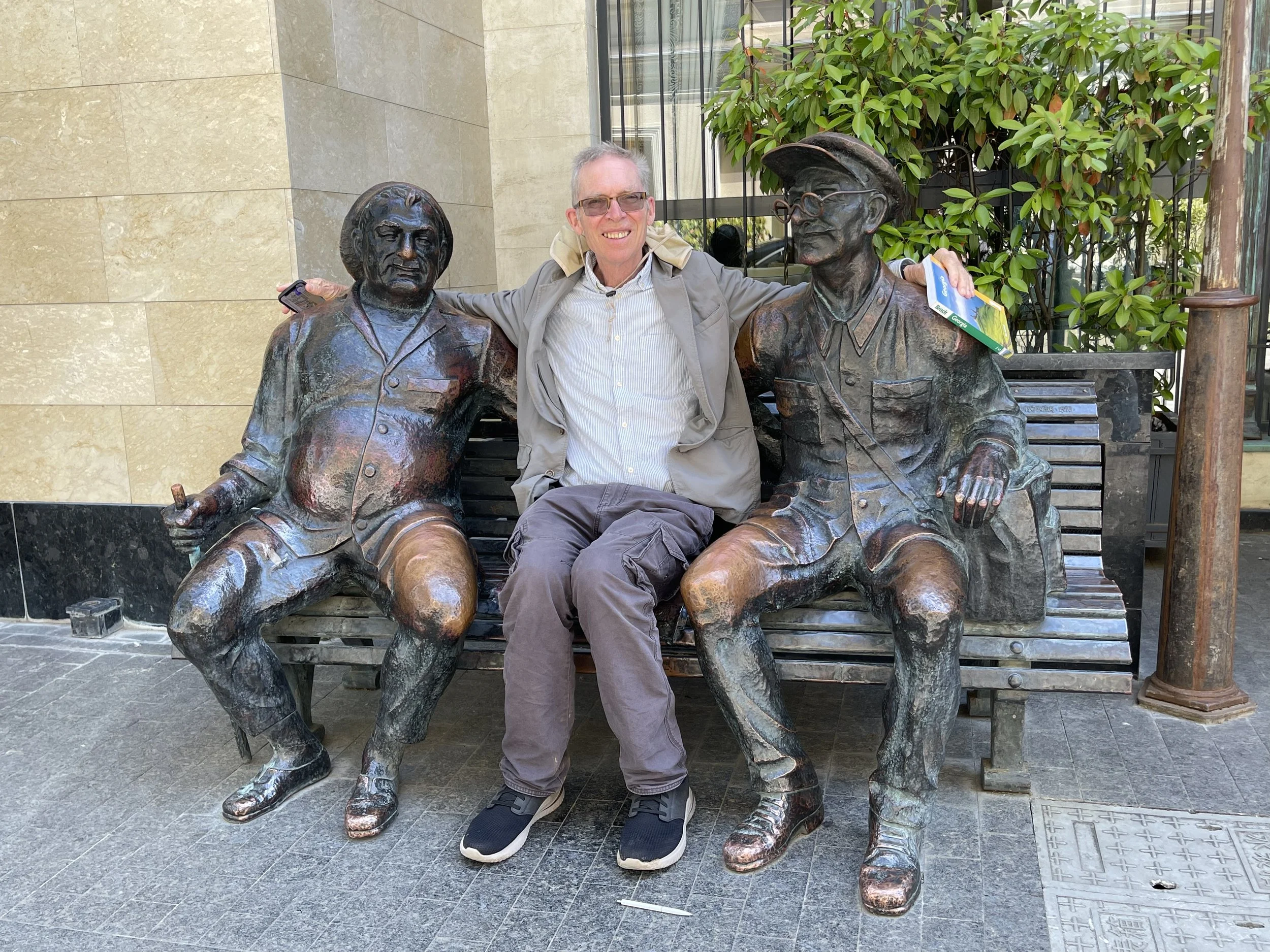 There is a lot of street sculpture. The one in the middle looks familiar?