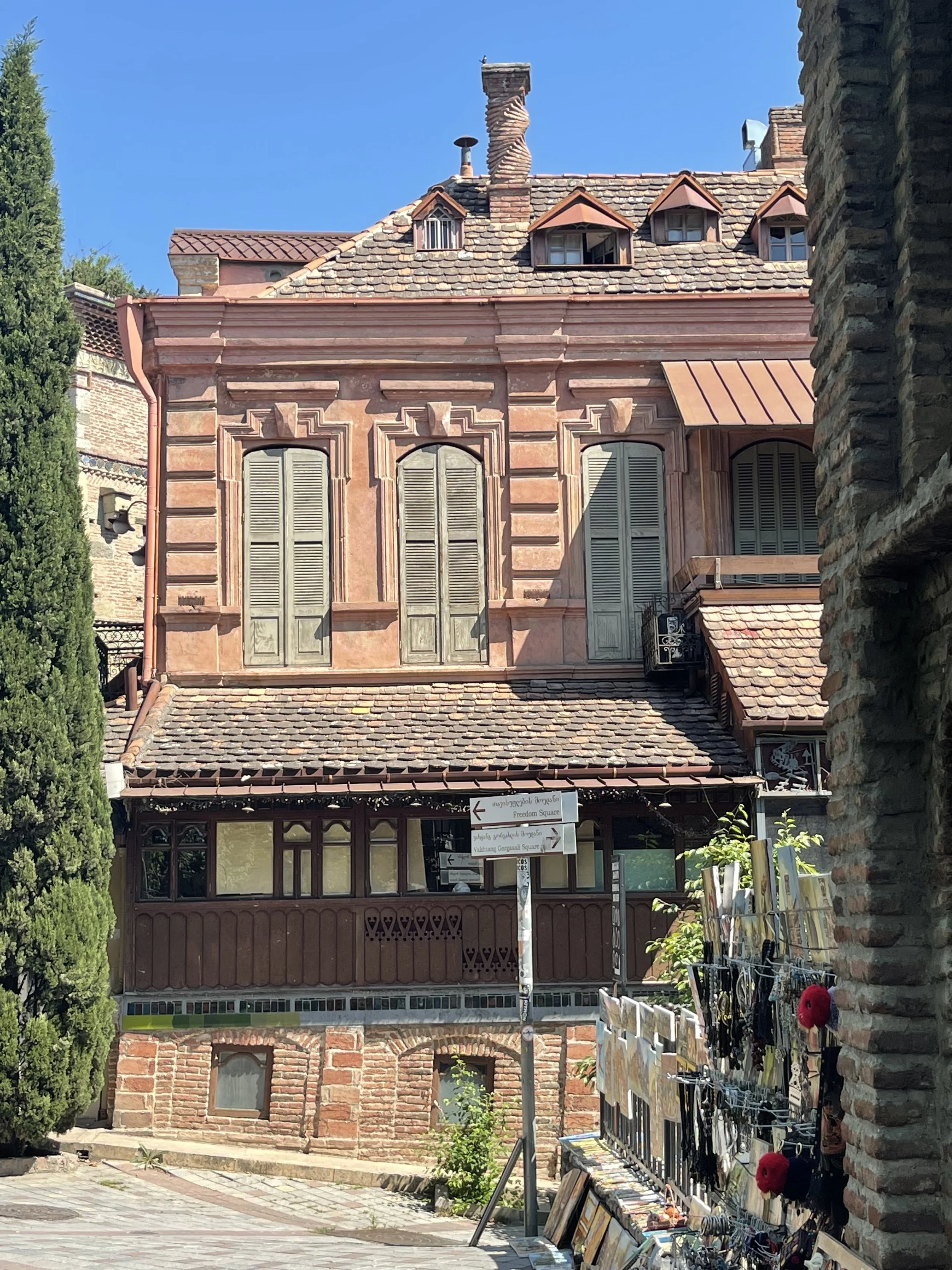 We planned to spend several days in Tbilisi before heading off to the mountains. As well as being the capital, Tbilisi is the main population centre and over 25% of Georgians live in the capital. It is a real mix of modern city with smart offices and flats, well maintained theatres and an Opera House, cheek by jowl with tiny businesses selling a handful of carrots, washing powder and some cat food.